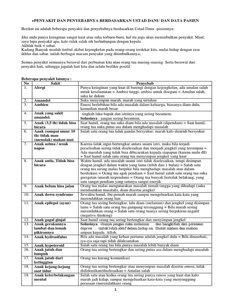 Analisa Penyakit Ala Ustad Danu Pdf from imgv2-2-f.scribdassets.com Kaki kanannya sering kaku dan oleh ustad danu di jelaskan bahwa sakit lambung itu disebabkan oleh sikap yang terlalu emosional. Gejala penyakit ini sering diduga sebagai serangan jantung atau penyakit jantung koroner, karena gejalanya yang hampir mirip dengan nyeri dada. Asam lambung adalah asam hidroklorida yang terdapat di lambung dimana asam tersebut berfungsi memecah makanan dan melindungi tubuh dari infeksi bakteri. Penyakit asam lambung naik bisa membuat anda sangat tidak nyaman. Menurunkan aktivitas bakteri jahat yang. Assalamu'alaikum ustad danu, nama saya yulianti dr palembang, sy sakit asam lambung sdh lama sekali gak sembuh sembuh ada pengobatan shinsei yg walau sgt ramai pasien sampai dia tdk ada waktu istirahat namun tetap tdk mau mematok tarif krn menurut dia inilah rejeki yg diberikan tuhannya. Penyakit asam lambung seperti ini dalam dunia medis disebut gastroesophageal reflux disease. Ditonton 14 rb5 bulan yang lalu.